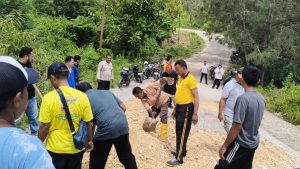FORMASI juga menerima sumbangan material tanah putih dari masyarakat untuk membantu memperbaiki ruas jalan Ikan Foti. “Kami sangat berterima kasih kepada masyarakat yang telah menyumbangkan tanah putih dan uang untuk perbaikan ruas jalan ini,” kata Dedy Boimata.